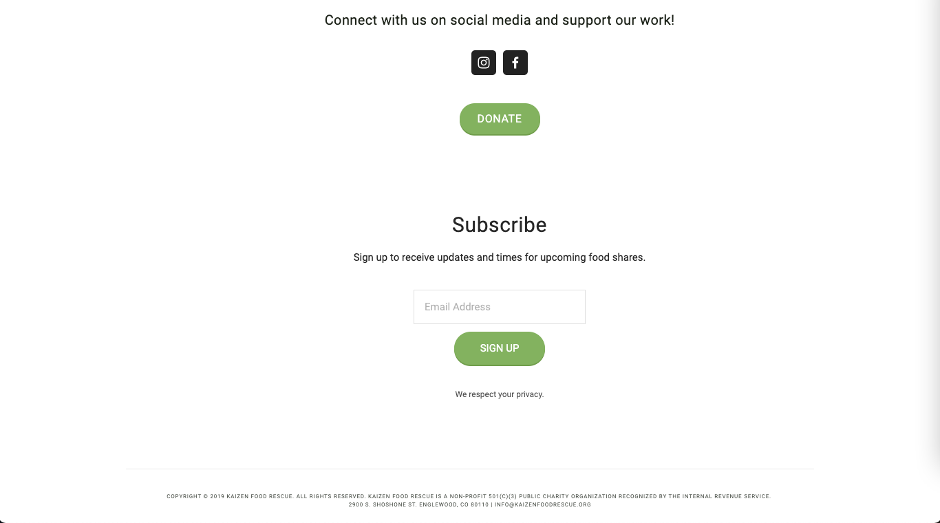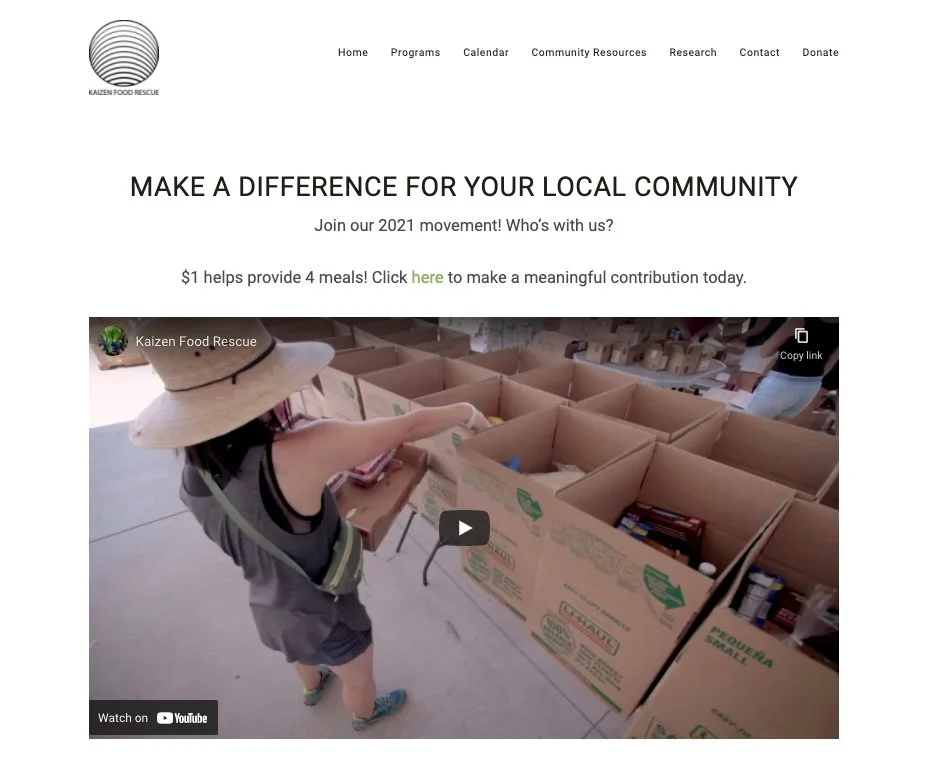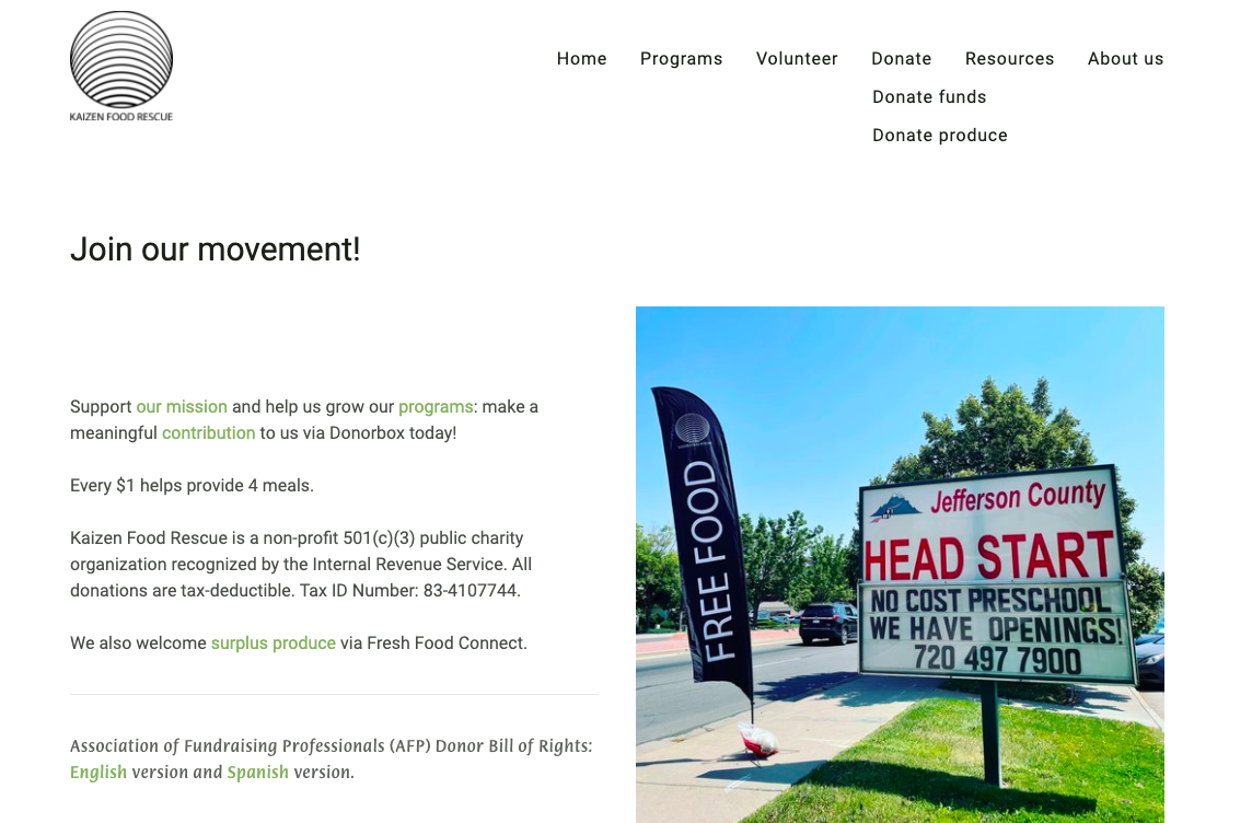 Boulder Food Rescue gives each program its own page, which keeps pages short and easy to read on mobile, which is where the majority of Kaizen’s traffic is coming from.